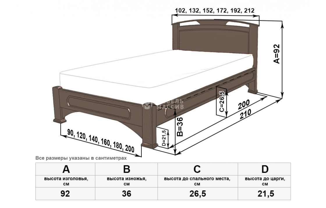 Прочная кровать Лаура сделана из экологически чистого древесного массива. Модель имеет чуть изогнутое изголовье с двумя продолговатыми отверстиями и крепкий каркас с устойчивыми ножками. Изделие, которое можно купить по выгодной цене в нашем интернет-магазине, представлено в различных комплектациях. Осуществляется доставка на дом по Йошкар-Оле и Республике Марий Эл.| Размер | Цена | |